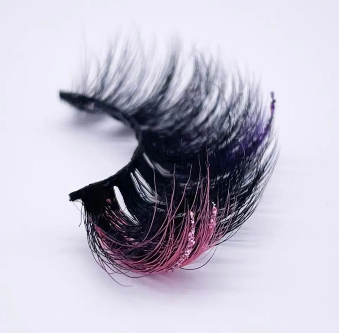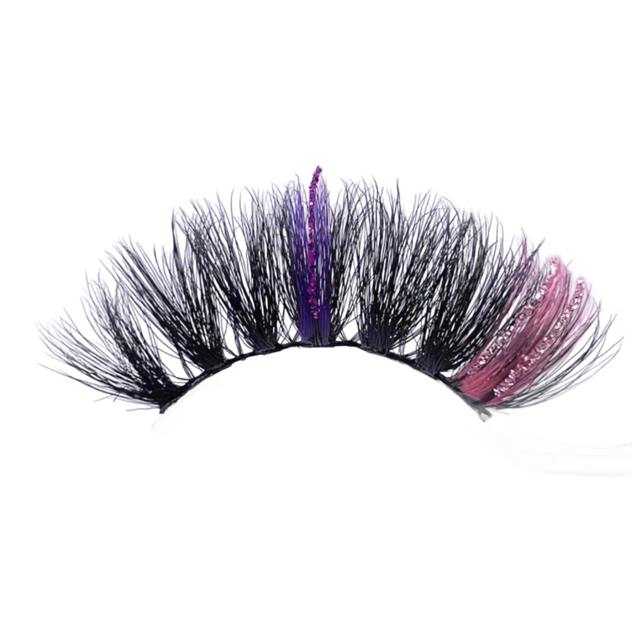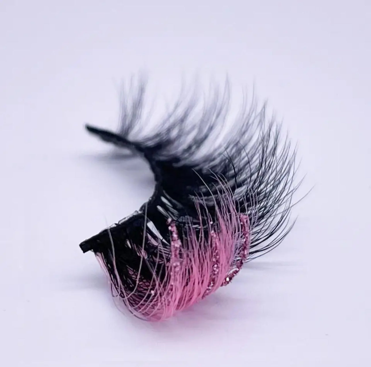 Add some sparkle to your look with our Glitter Colored Strip Eyelashes. Handmade with a fierce glamour, these lashes feature a pop of glitter for a bold, eye-catching effect. Perfect for adding a touch of drama to any makeup look.