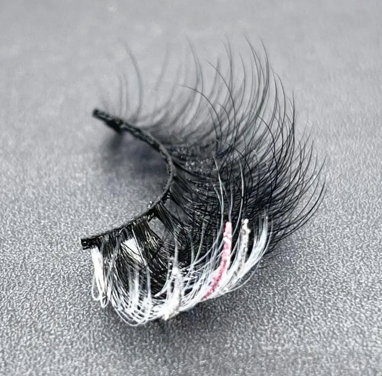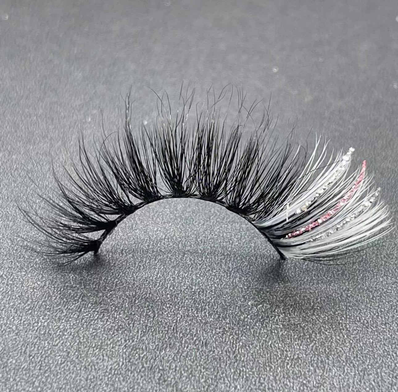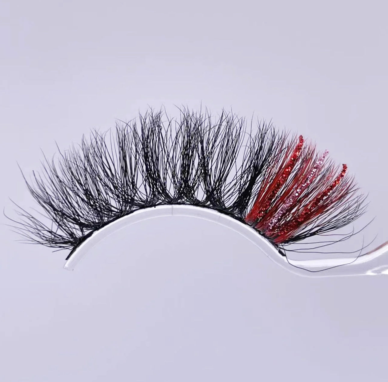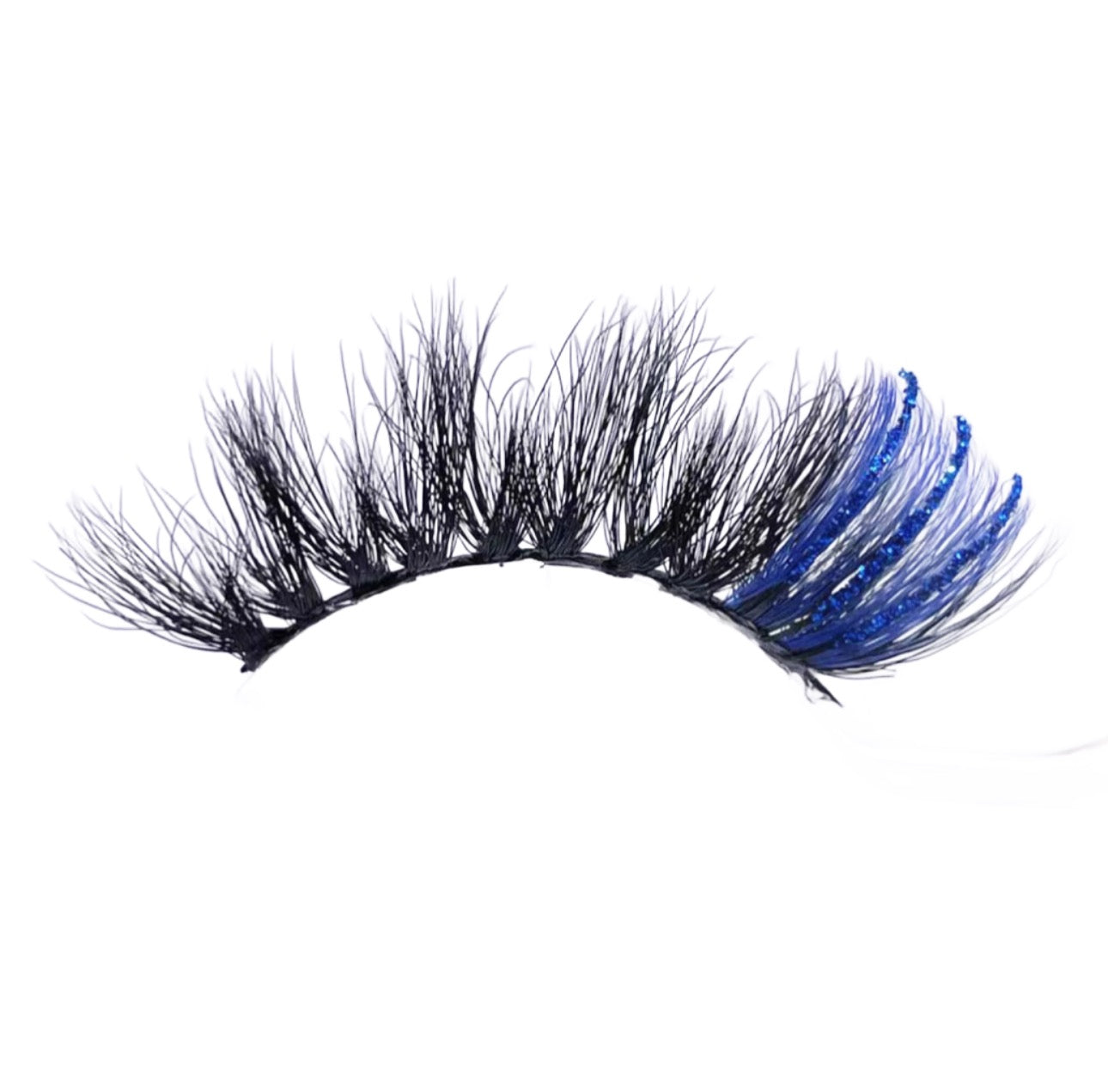 Add some sparkle to your look with our Glitter Colored Strip Eyelashes. Handmade with a fierce glamour, these lashes feature a pop of glitter for a bold, eye-catching effect. Perfect for adding a touch of drama to any makeup look.